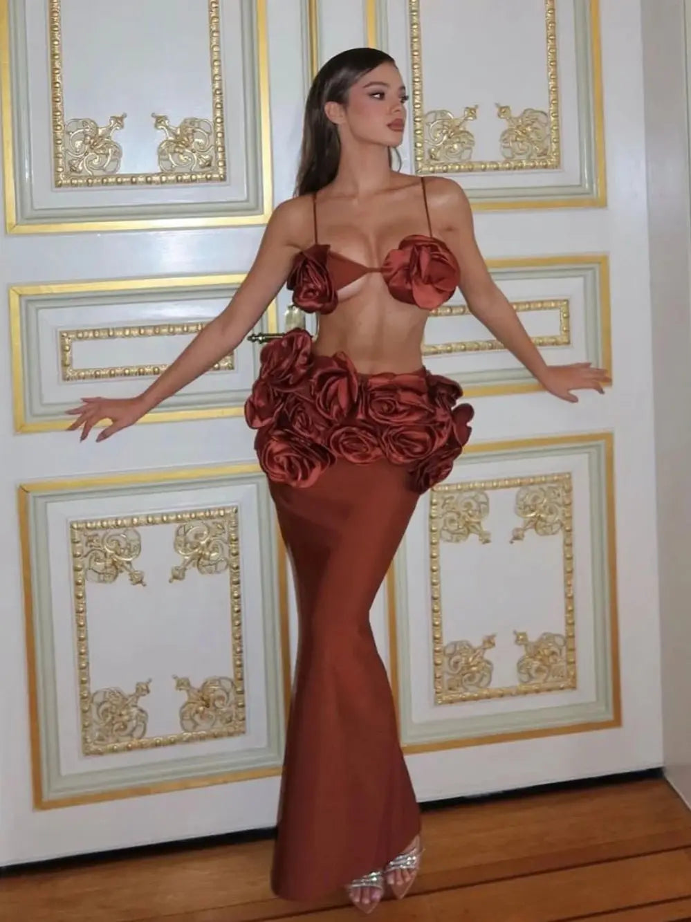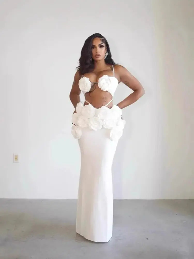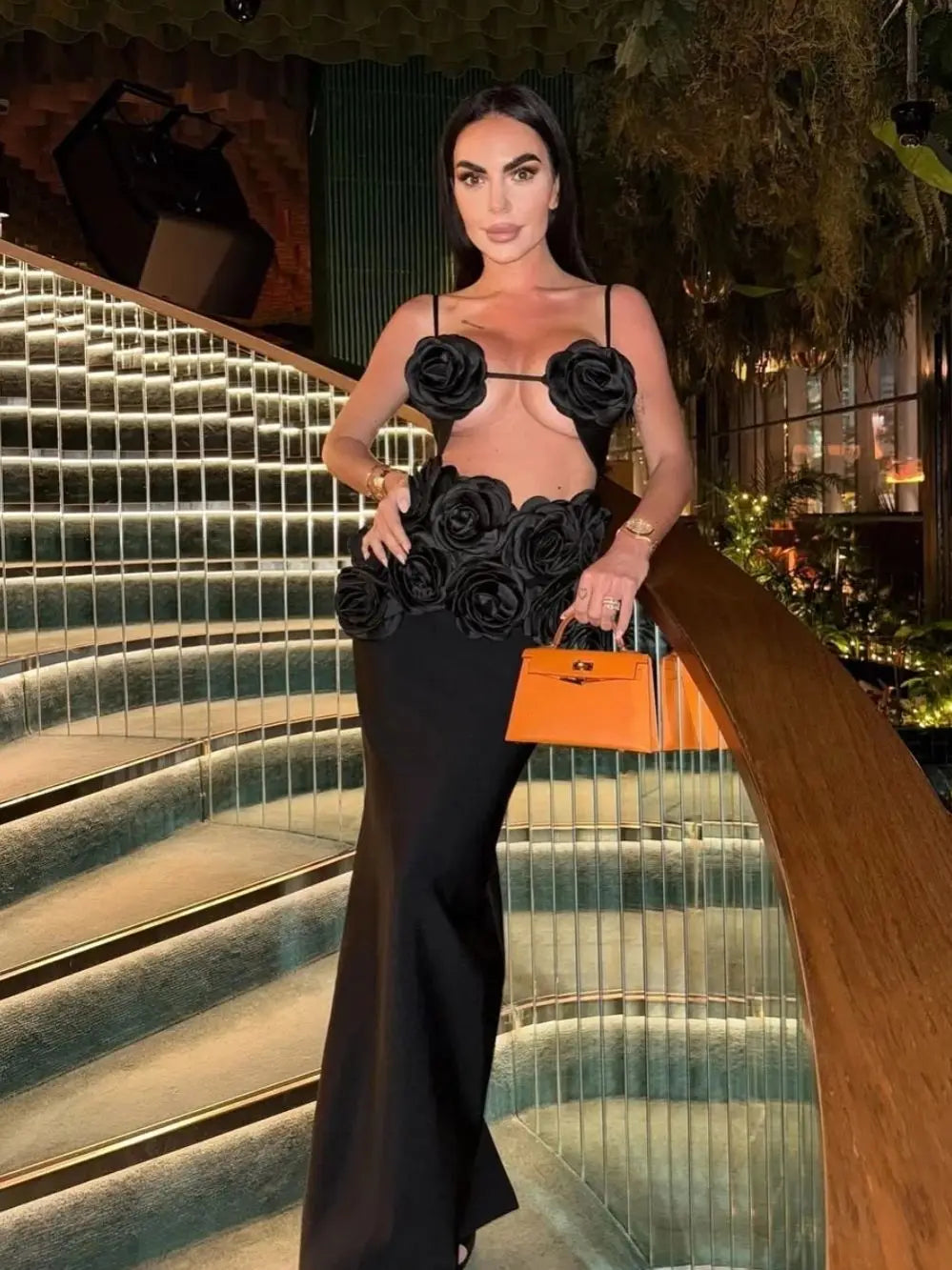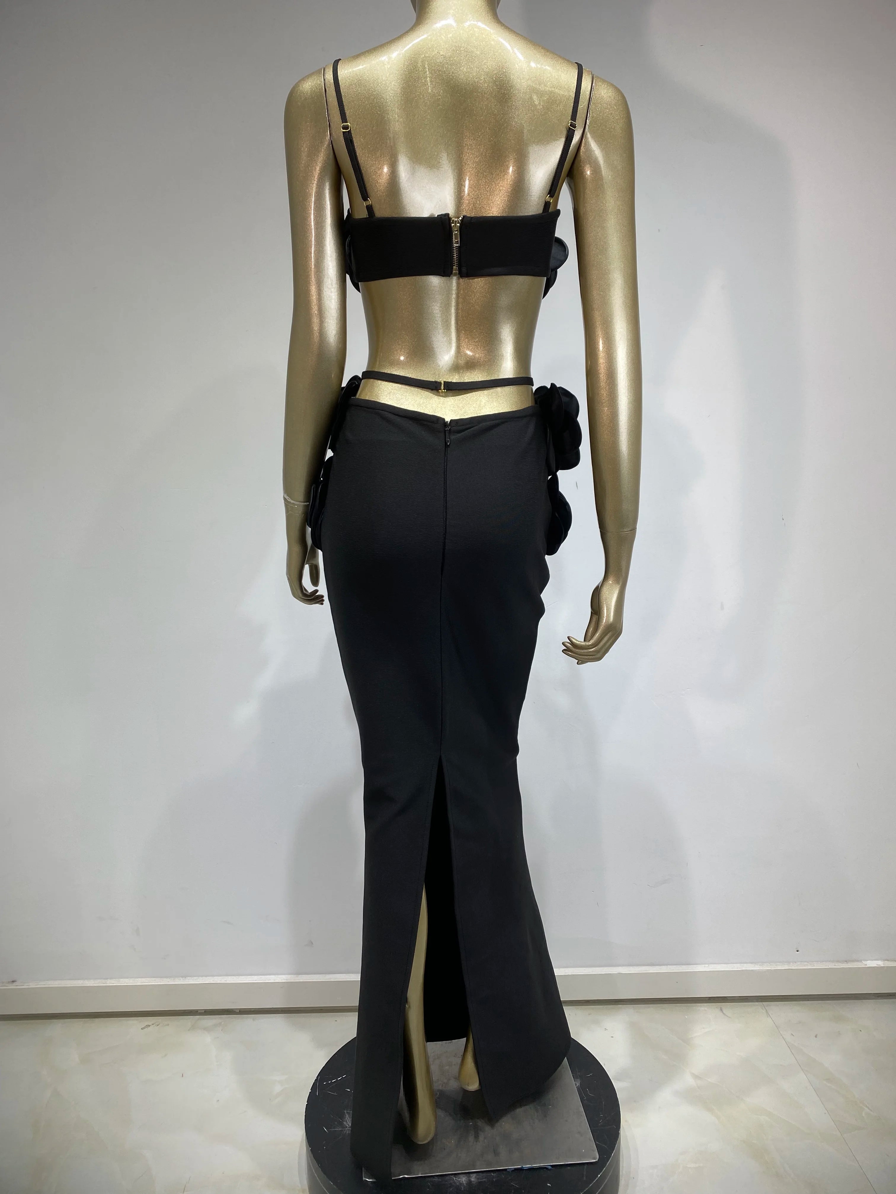 Unleash your bold side with this Sexy Flower Black Bandage Two Piece Set, designed for the modern woman who wants to make a statement.