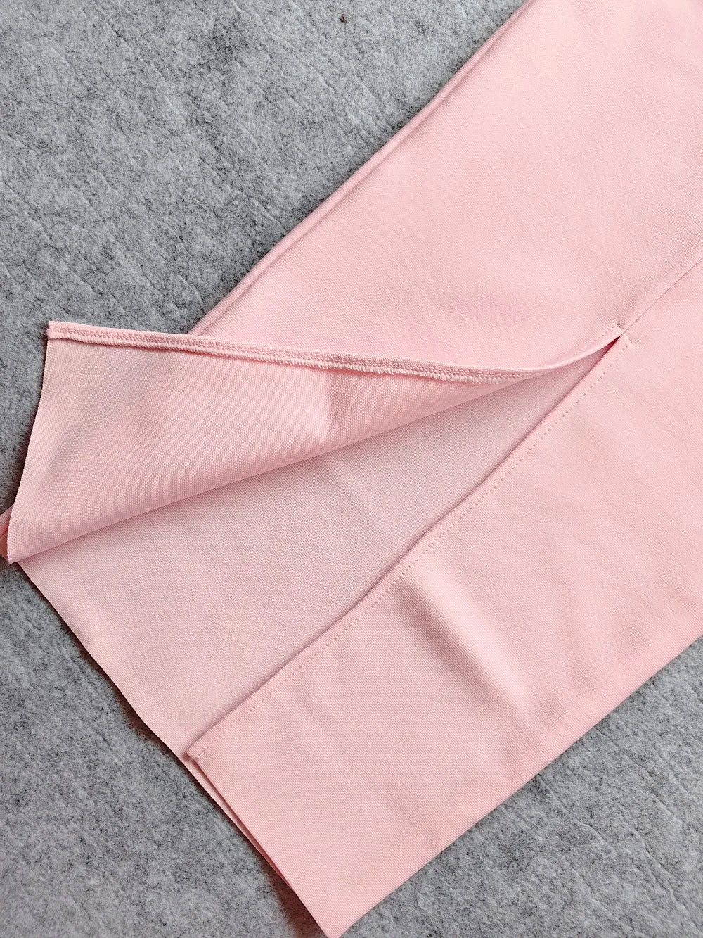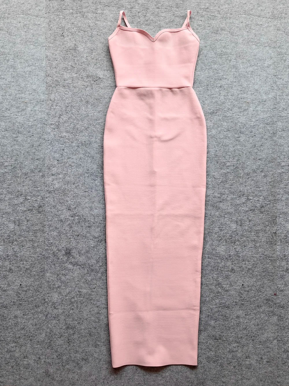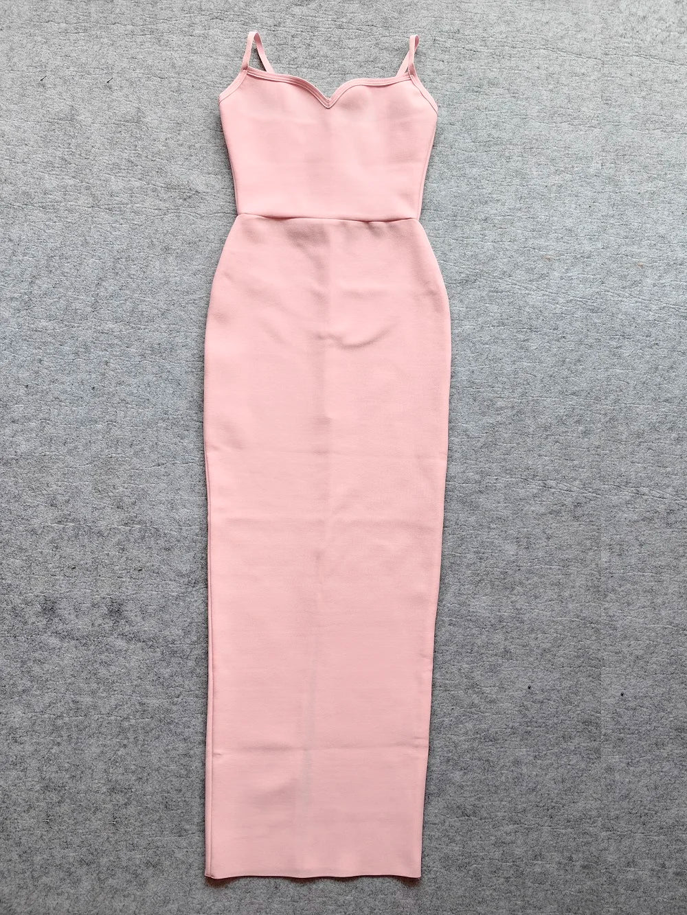 Discover the allure of this sexy pink bandage maxi dress, designed to make a statement.