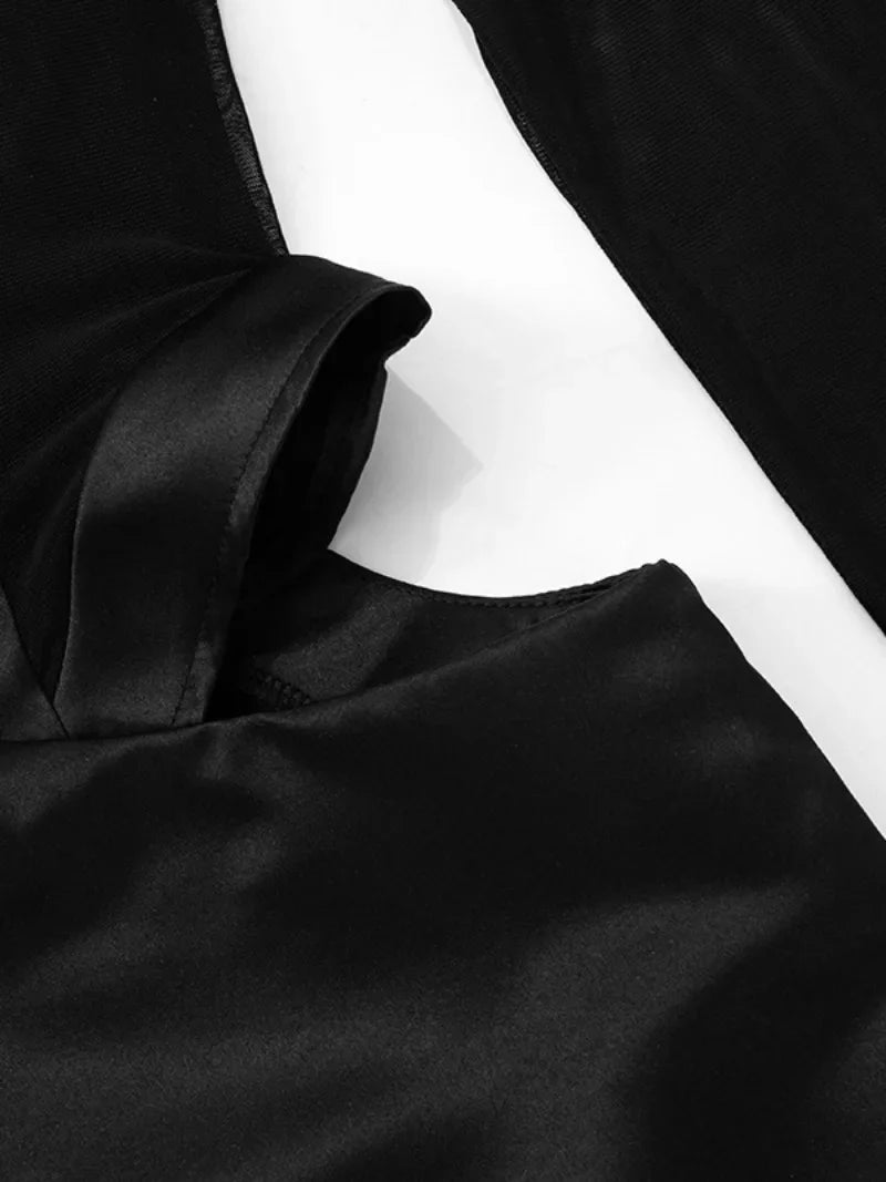 Turtleneck Mesh Patchwork Mini Dress