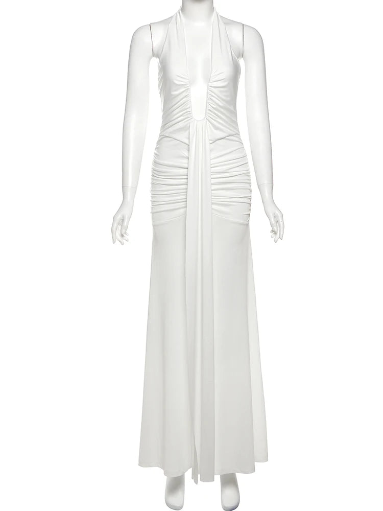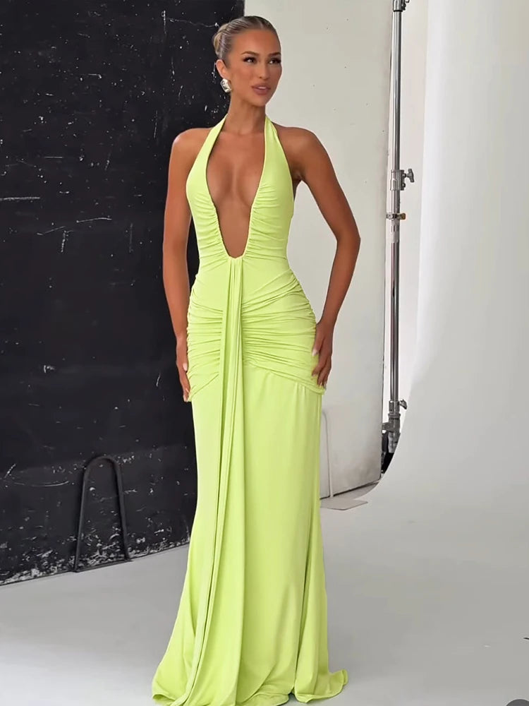 Elevate your summer wardrobe with the V-Neck Sleeveless Sheath Dress, designed for the modern woman who values style and comfort. This ankle-length dress features: