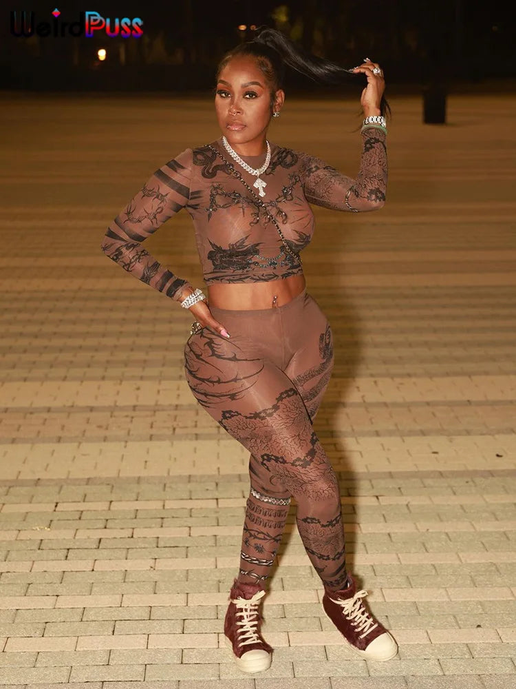 Elevate your style with the Puss Dragon Print Tracksuit Set. This ultra-slim ensemble features a pullover top with a trendy O-neck collar and ankle-length pencil pants designed for a flattering fit. Crafted from a high-stretch blend of spandex and polyester, it promises comfort and mobility without compromising on style.