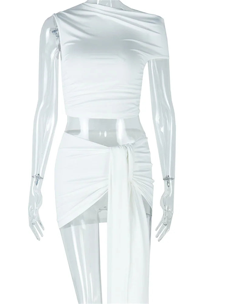 Introducing the perfect ensemble for your spring and summer wardrobe: the Ruched Crop Top and Bandage Skirt Set. This stylish duo features a sleeveless top with an O-neck design, crafted from a comfortable woven fabric blend of spandex and polyester.