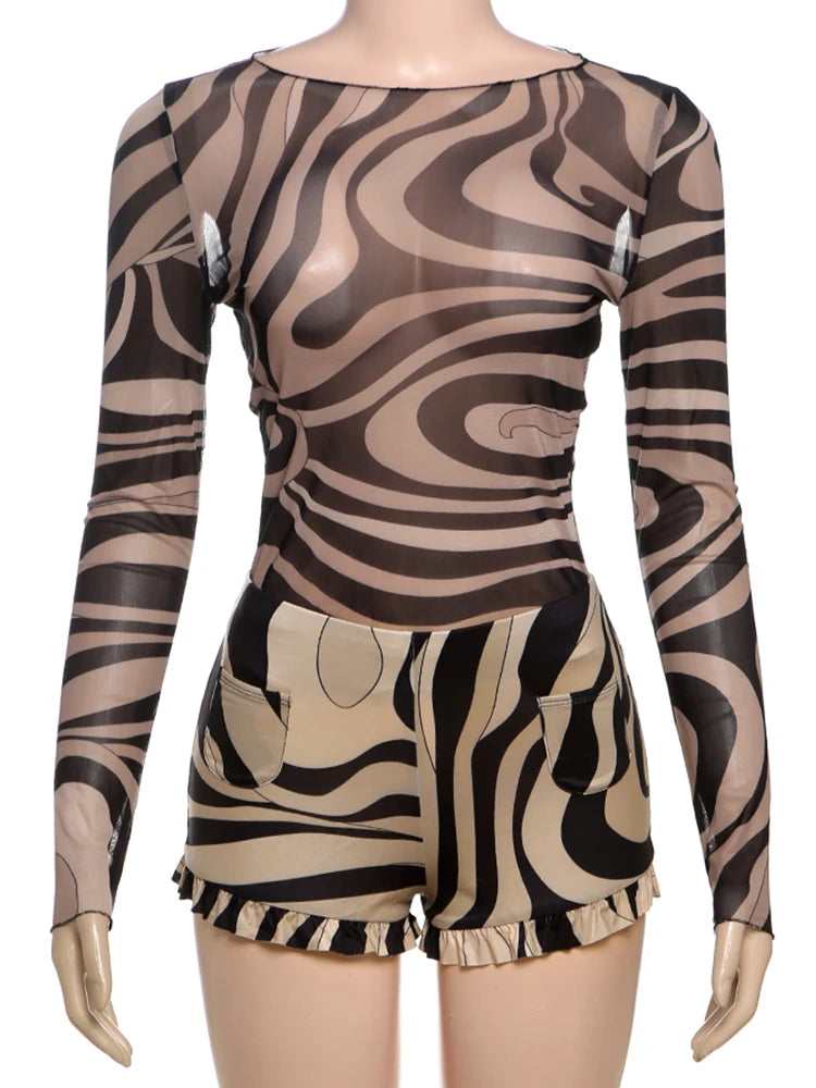 Elevate your wardrobe with this stunning Mesh Bodysuit and Leopard Print Shorts Set. Designed for the confident woman, this ensemble combines sexy appeal with comfort.