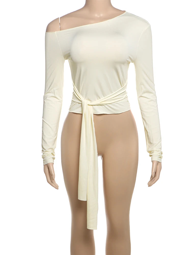 Elevate your wardrobe with the Skew Collar Off Shoulder Crop Top. This full-sleeve tee features a trendy skew collar and ruched knot design, perfect for casual outings or parties. Crafted from a high stretch woven fabric, it promises a comfortable fit that moves with you.
